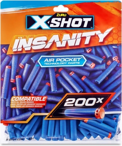 Nyd timevis af sjov med disse X-Shot Insanity skumprojektiler, som er udstyret med Air Pocket-teknologi for præcis skydning. Pakken indeholder 200 blå projektiler, ideelt til brug med kompatible blastere.