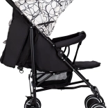 Den har dobbelt hjul for bedre stabilitet, bagerste bremser for sikker stopning og 5-punkts sikkerhedsseler med polstring for maksimal komfort for barnet. Justerbart ryglæn med net og fodstøtte tilpasser vognen til dit barns behov.