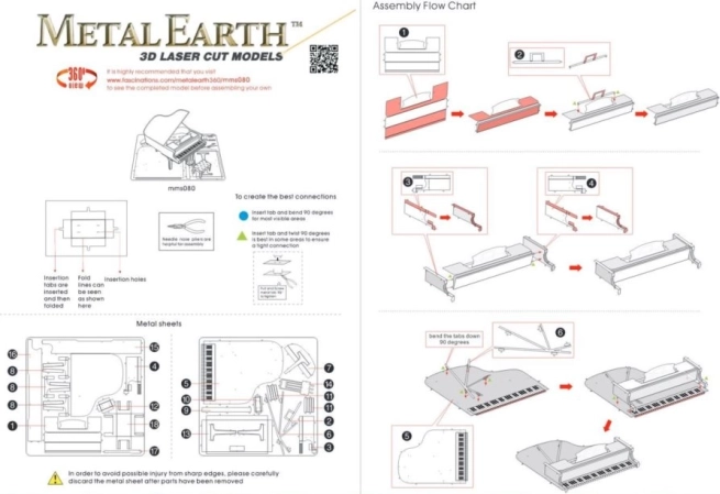 Byg et ikonisk klaver fra METAL EARTH-kollektionen og pynt dit interiør med en stilfuld metalmodel. Sættet fra Silver Edition indeholder 2 stålark med præcist lasergraverede dele. Samlingen er en underholdende udfordring for fingernemme skabere, og resultatet er en realistisk miniature, ideel som dekoration og gave.