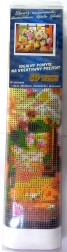 Diamantmaling – fremgangsmåde: Oversiden af lærredet er belagt med lim og dækket af en gennemsigtig folie. Fjern folien gradvist i sektioner i takt med, at du påfører stenene. Lærredet indeholder symboler efter en legende, som henviser til de farvede poser med sten. Tag voks i pennen og påfør stenene på de tilsvarende steder.