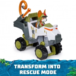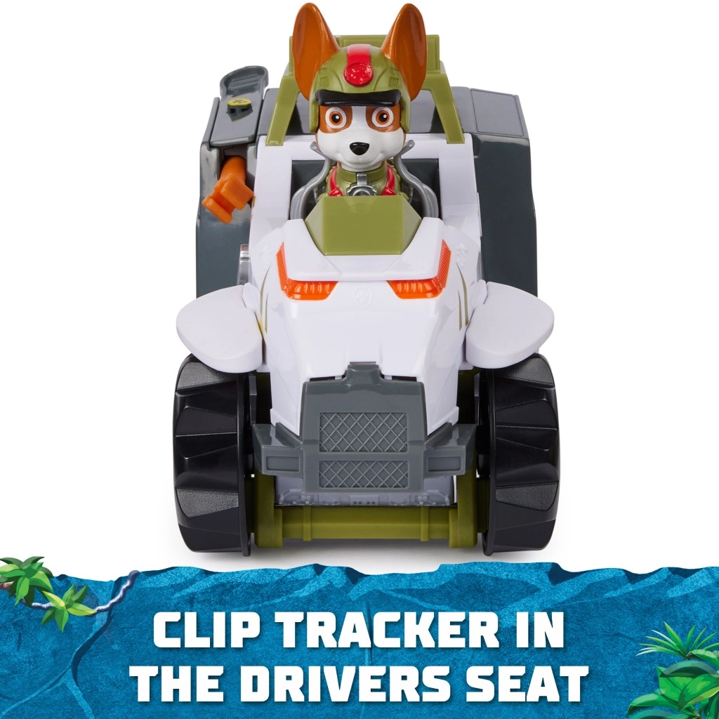 Træd ind i eventyrets verden med Tracker og hans junglekøretøj. Det er nok at løfte halen, ørerne og affyringsporten, lade projektilet og trykke på Paw Patrol-emblemet, så hæver køretøjet sig og fuldender transformeringen til redningstilstand. Børn kan dermed genskabe yndlingsscener fra serien og udvikle fantasi og finmotorik.