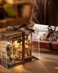 Samlingen er intuitiv og sjov – de enkelte dele passer præcist, så både begyndere og erfarne modelbyggere kan nyde processen. Cirka 6 timers kreativt arbejde giver en behagelig pause fra hverdagen, og resultatet er en stilfuld mini-café med belysning, der lyser op på hylden, skrivebordet eller i vitrinen.