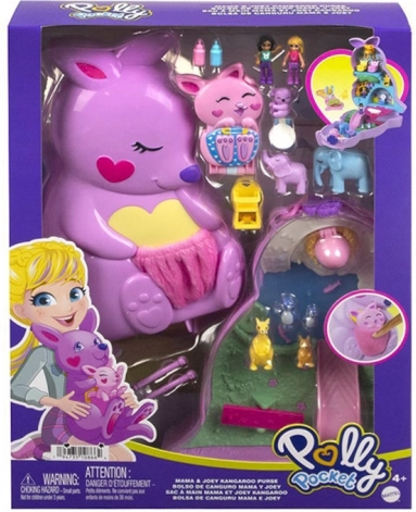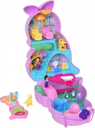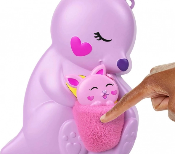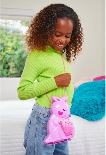 Polly Pocket håndtaske med kænguru – sammenklappeligt legesæt med figurer