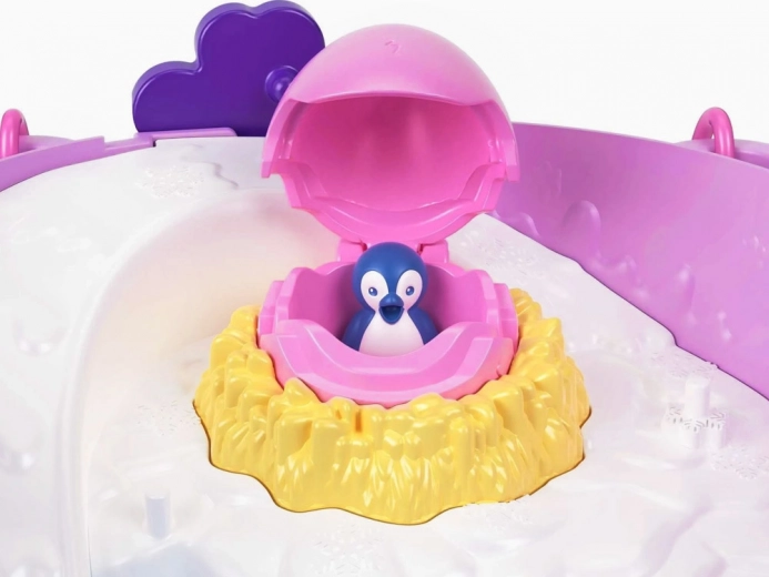 Den nederste del af sættet er en sand forlystelsespark: børn vil elske rutsjebanen ned i vandet, gyngen og det hemmelige æg, hvor en nuttet lille pingvin “kigger frem”. Den lille kænguru rummer desuden en anden mini-legeplads for endnu mere leg. I pakken følger mini-dukker, dyr og masser af tilbehør til pleje og fodring.