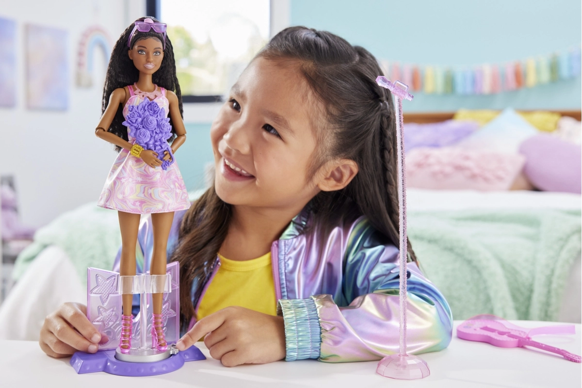 Barbie 65-års jubilæums Popstjerne-karrieredukke og 10 tilbehør, inklusiv bevægelsesaktiveret scene