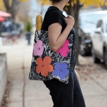 Denne taske viser det berømte blomsterprint af Andy Warhol, hvilket giver den et kunstnerisk touch.