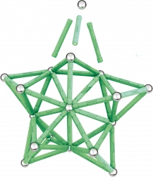 - 44 lysende magnetiske stænger, 44 stålkugler, 2 stabile firkantede baser, 2 stabile femkantede baser