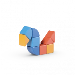 Ud over de klassiske terninger indeholder sættet også to unikke former, som udvider bygge-mulighederne og stimulerer fantasien.
