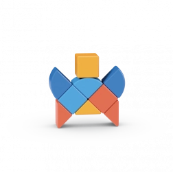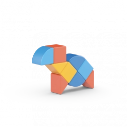 Geomag Magicube Shapes er et smart magnetisk byggesæt skabt til små børnehænder. Ni farverige dele, inklusive to specialformer, forbindes fra alle sider, så børn nemt kan bygge deres første dyr, køretøjer og enkle objekter. Takket være den intuitive samling udvikler børn naturligt hånd–øje-koordination og træner logisk tænkning.