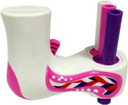 Med fletningssættet kan dine børn skabe elegante frisurer nemt og hurtigt. Det indeholder et særligt fletteapparat med tre roterende holdere, der fastholder hårtotter. Den lilla hårdeler gør det let at dele håret i tre lige store sektioner og sikrer nem isætning i apparatet.