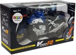 Under kørsel afgiver motorcyklen realistiske lyde af høj fart, og for- og baglygterne tændes, så snart køretøjet sætter i gang. Legetøjet er egnet til børn fra 3 år, opfylder CE og EN 71, og leveres i gavekarton med gennemsigtigt vindue.