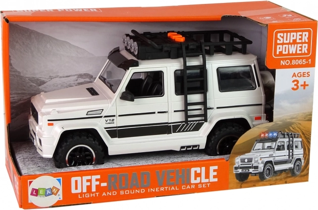 Oplev realistisk leg med den hvide offroad-bil, der begejstrer med lys, motorlyde og musik. Med åbningsbare døre kan børn gemme små skatte og forvandle enhver leg til en spændende ekspedition. De kompakte mål gør den nem at håndtere og bære.