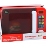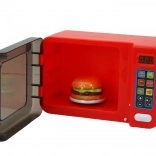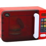 Interaktiv børnemikroovn i rød, der forvandler køkkenlegen til en realistisk oplevelse. Den tilbyder lyseffekter, roterende tallerken, åbnelåge og opvarmningsprogrammer. Inkluderer tilbehør – hamburger, pommes frites og hotdog. Sikker leg for børn fra 3 år, drevet af 3× AA (medfølger i pakken).