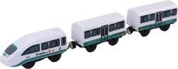 Toget består af et lokomotiv og to vogne, som nemt kan kobles sammen. Driften sikres af ét 1,5 V AA-batteri (ikke inkluderet i pakken). Sjov på en sikker og gennemtestet måde – produktet er CE-certificeret og opfylder EN71-standarden, anbefales til børn fra 3 år.