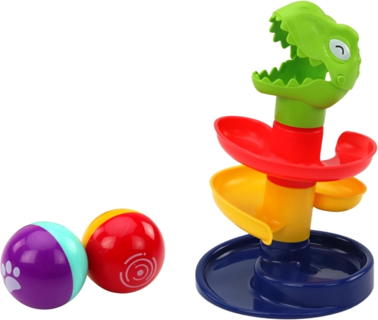 Legetøjet hjælper børn med at øve koordination, præcision og manuelle færdigheder, når de lægger kuglerne i dragens gab og følger deres vej nedad. De farvede kugler drejer under turen, hvilket stimulerer børns syn, mens raslelyden giver sansemæssig stimulans. Dette legetøj er ikke kun til sjov, men fungerer også som et læringsredskab, der understøtter eksperimentering og opdagelse.