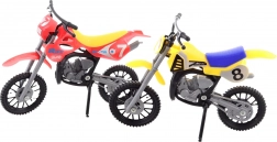 Motorcyklerne har fritløbende hjul, støttefødder for stabil parkering og attraktive racergrafikker. Farvemix leveres efter lagerstatus, så hver pakke kan være en overraskelse. Den praktiske blisterpakning er ideel som gave.