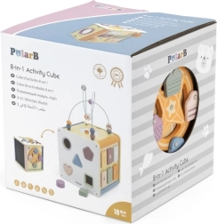 Viga PolarB Edukativ terning 8-i-1 tilbyder otte forskellige aktiviteter, der understøtter flere sider af barnets udvikling. Legetøjet indeholder: