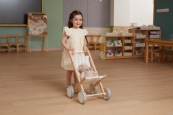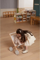 Dukkevognen i træ er et tidløst stykke legetøj, der understøtter rolleleg, omsorg og daglig bevægelse. Den naturlige trækonstruktion giver stabilitet og holdbarhed, mens tekstilsædet giver en behagelig tur til både dukker og yndlingsbamser.