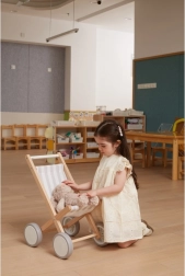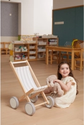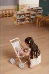 Rammen i naturtræ giver stabilitet og lang levetid. Ideel til daglig leg med dukker og bamser.