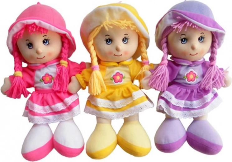 Stofdukke, 3 farvevarianter. Dukken synger 4 forskellige sange. Velegnet til børn fra fødslen