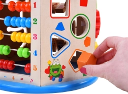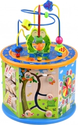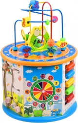 Denne træuddannelsesterning tilbyder et bredt udvalg af aktiviteter, som hjælper dit barn med at tilegne sig nye færdigheder og viden. Den inkluderer mange funktioner, herunder en perlelabyrynth, farverigt kugleramme og formudskæring. Alle elementer er designet til små hænder, hvilket sikrer sikker og komfortabel leg.