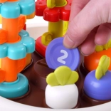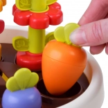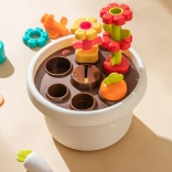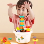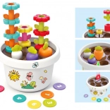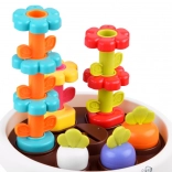 Legetøjet fremmer barnets finmotoriske færdigheder gennem interaktive elementer som stabelbare blomster og farverige markører.