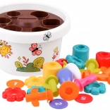 Hver del af legetøjet tilbyder forskellige muligheder for børn at lære grundlæggende farver og former. Alle dele kan nemt opbevares i blomsterkassen, hvilket sparer plads og holder orden.