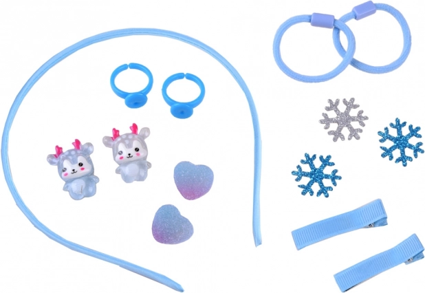 Sættet indeholder et bredt udvalg af tekstiler, herunder tyl, bånd, perler, pynt og andre dekorative elementer, som støtter kreativ skaben.