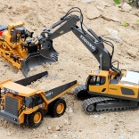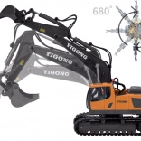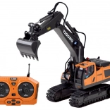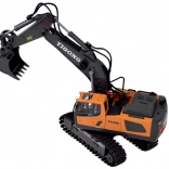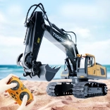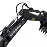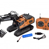 Den ergonomiske 2,4 GHz-controller sikrer stabil rækkevidde uden forstyrrelser og muliggør kørsel frem/tilbage, drejning højre/venstre, rotation på stedet samt fuld styring af arm og skovl. Der er også en demotilstand. Graveren har åbningsbart motordæksel og kvalitetsbygget konstruktion for lang levetid.