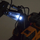Denne RC-graver i legetøjsskala imponerer med præcis udførelse og slagfast plast. Takket være de gummibælter bevæger den sig sikkert på ujævnt underlag, armen hæves og sænkes, og skovlen opsamler materiale som i virkeligheden. LED-lys og motordlyde forstærker den realistiske oplevelse.