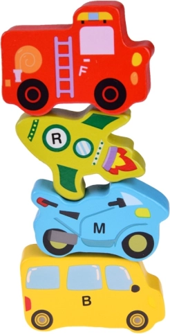 Opdag et sjovt og lærerigt legetøj til børn: et stort alfabetisk træsæt med køretøjer. Hver brik er farvelakeret og mærket med et bogstav, så børn øver bogstavgenkendelse, navne på køretøjer og farver gennem leg. De holdbare træstykker understøtter finmotorik, sortering og kreativ leg.