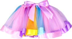 Drømmer du om den perfekte nederdel til små dansepiger? Vores farverige tutunederdel med regnbueforløb og pink sløjfe er det helt rigtige valg.