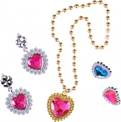 En gylden halskæde med et lyserødt hjerte, matchende øreringe og ringe giver enhver lille fe ekstra glans. Ideelt til enhver lejlighed.