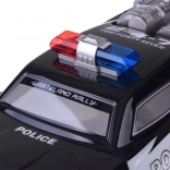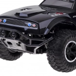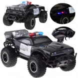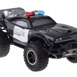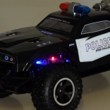 Denne store monster truck er lavet af fleksibelt plast, hvilket gør den let. Store gummihjul med affjedrede støddæmpere sikrer fremragende greb på terrænet og nem håndtering i sving. Køretøjet er udstyret med justerbar hjulkonvergens, hvilket forbedrer kontrollen. Den virkelige attraktion er dens rød-blå blinkende lys, der efterligner politisignaler og lyser i mørket, hvilket skaber en realistisk oplevelse.