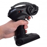 Fjernbetjeningen fungerer på en frekvens på 2,4 GHz, hvilket giver en stabil forbindelse og muliggør præcis styring af bilen.