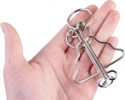 Sættet med metalpuslespil er det ideelle valg for alle, der elsker logiske udfordringer. Takket være den solide trådkonstruktion tåler de hyppig brug og giver langvarig underholdning. Hver del tester din tålmodighed, rumlige forestillingsevne og finmotorik – det kræver blot det rigtige træk, så er løsningen inden for rækkevidde.