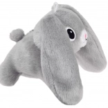 Kanin er lavet af blød plys, har broderede øjne og næse, hvilket gør det til en sikker ledsager for børn.