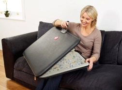 To udtagelige underlag gør det nemmere at sortere farver og former, så du kan lægge mere effektivt og overskueligt – derhjemme ved bordet, i sofaen eller på farten. Mappen har en slank profil og kan nemt skubbes ind under sengen eller ved siden af skabet, så den ikke er i vejen.