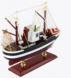 Denne træsamlermodel indfanger perfekt stemningen fra den maritime verden. Kombinationen af mørkeblå farve med hvide striber og den markante udsmykning på stævnen skaber et klassisk, autentisk look. Præcist fremstillede master med net og en omhyggeligt udført navigationskabine understreger håndværkskvaliteten.