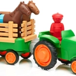Sættet indeholder en traktor og to heste, som børn kan bygge efter deres egne idéer. Bonde figuren tilføjer til sjov, stimulerer fantasifuld leg og udvikling af sociale færdigheder i børn. Med klare farver og enkel design er dette byggesæt egnet til små hænder.