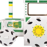 Denne paptraktor til børn stimulerer fantasi, fælles leg og finmotorik. Den lette men robuste papkonstruktion er sikker til indendørs brug og klar til hurtig samling. Den neutrale hvide overflade med grønne-gule detaljer virker legende og passer nemt ind på ethvert børneværelse.