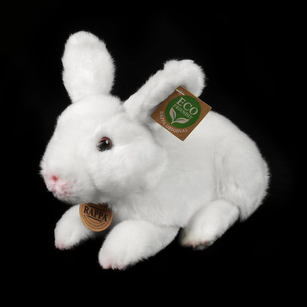 Denne bløde hvide kanin vil glæde både børn og voksne med sit realistiske udseende, sin bløde pels og sin høje kvalitet. Takket være bæredygtige materialer med ECO‑FRIENDLY fyld af genanvendte PET-flasker er den et ansvarligt valg til enhver husstand.