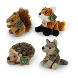Ræv, egern, pindsvin og ulv har naturtro farver, markante øjne og blød pels. De stimulerer fantasien og indbyder til kram og fortællinger om skovens eventyr.