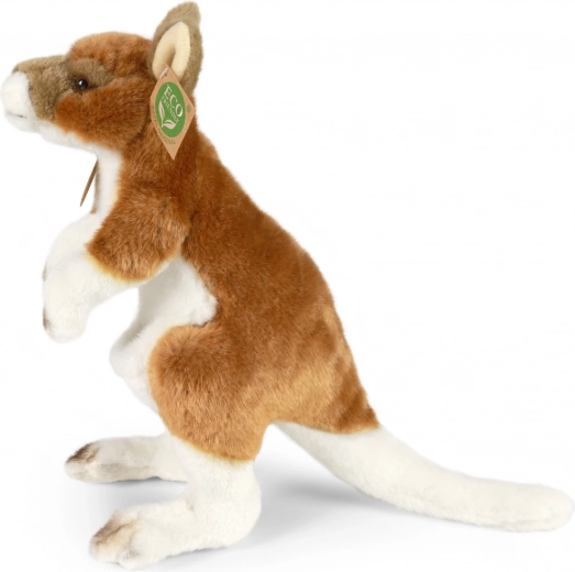 Den eco‑friendly fyldning af genanvendte PET‑flasker sikrer hensyn til miljøet, mens blødheden og komforten forbliver på topniveau. Kænguruen står oprejst, har den karakteristiske hale og ører, hvilket understreger dens troværdige fremtoning.