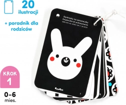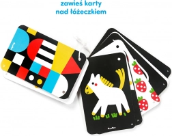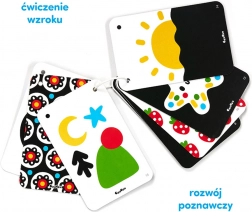 Den praktiske bog på snor indeholder 20 illustrationer. De markante, kontrastfyldte mønstre fanger din babys øjne og opmærksomhed. Kig på dem sammen og tal om, hvad I ser. Det er en fantastisk måde at tilbringe tid sammen med dit lille barn og skabe et særligt bånd. Vi har vedlagt en guide fuld af information om spædbørns synsudvikling og idéer til leg.