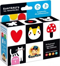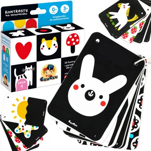 Hvordan leger man med en baby? Med kærlighed, nænsomhed og hjælpemidler skabt til de allermindste! Det er tid til den første bog: læs sammen fra de allerførste dage. Det er en utrolig behagelig måde aktivt at støtte dit barns udvikling og bygge et unikt bånd mellem jer. Kontraster på snor er en usædvanligt nuttet bog på snor til de allermindste babyer.