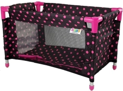 Leder du efter en sød og samtidig praktisk dukkeseng? Modellen Alice i sort‑lyserød med prikker giver børn realistisk rolleleg som at passe en baby. Takket være de mesh‑beklædte sider har børnene overblik over dukken og kan nemt holde øje med den under legen.