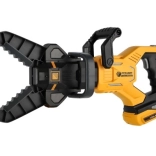 Efterligner troværdigt en ægte hydraulisk redningssaks: markante kæber, gul/sort design og sikre afrundede former, der indbyder til rolleleg.