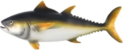 Tunmodellen udmærker sig ved præcis formgivning af finner, skæl og proportioner. Den imponerende grå krop med gule accenter giver figuren et autentisk udseende.