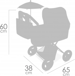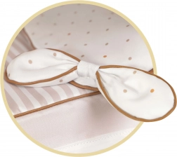 Den gennemtænkte dukkevogn i en kombination af lys beige og hvid med fine prikker og striber vil begejstre enhver lille mor. Det naturlige look fuldendes af søde sløjfer og små broderede bier. Takket være den sammenklappelige konstruktion er vognen let at bære og opbevare.